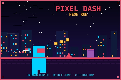 Pixel Dash: Neon Run immerses you in a vibrant, neon-lit cyberpunk city where speed and reflexes are key to survival. This game impresses players with its classic pixel art graphics and unique 8-bit chiptune soundtrack.